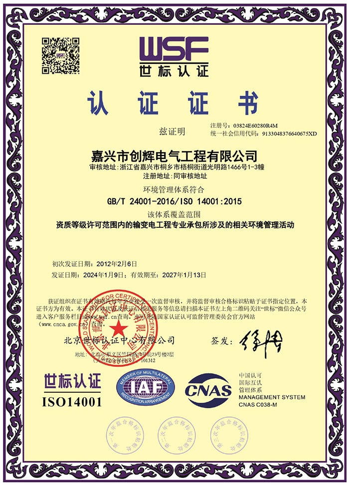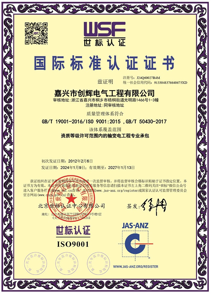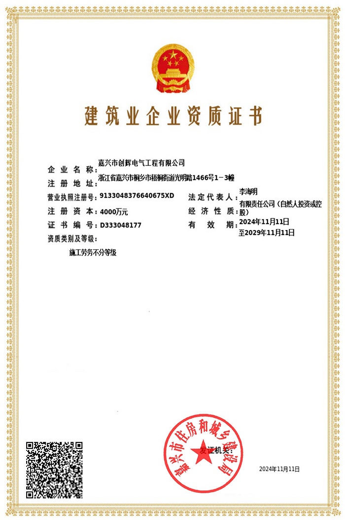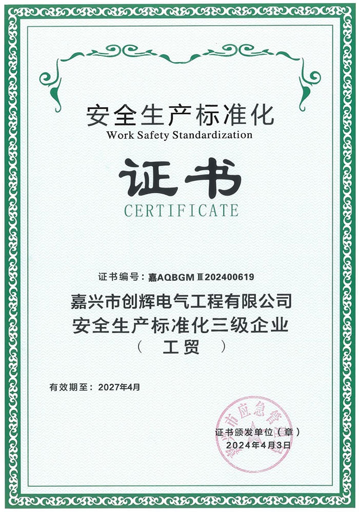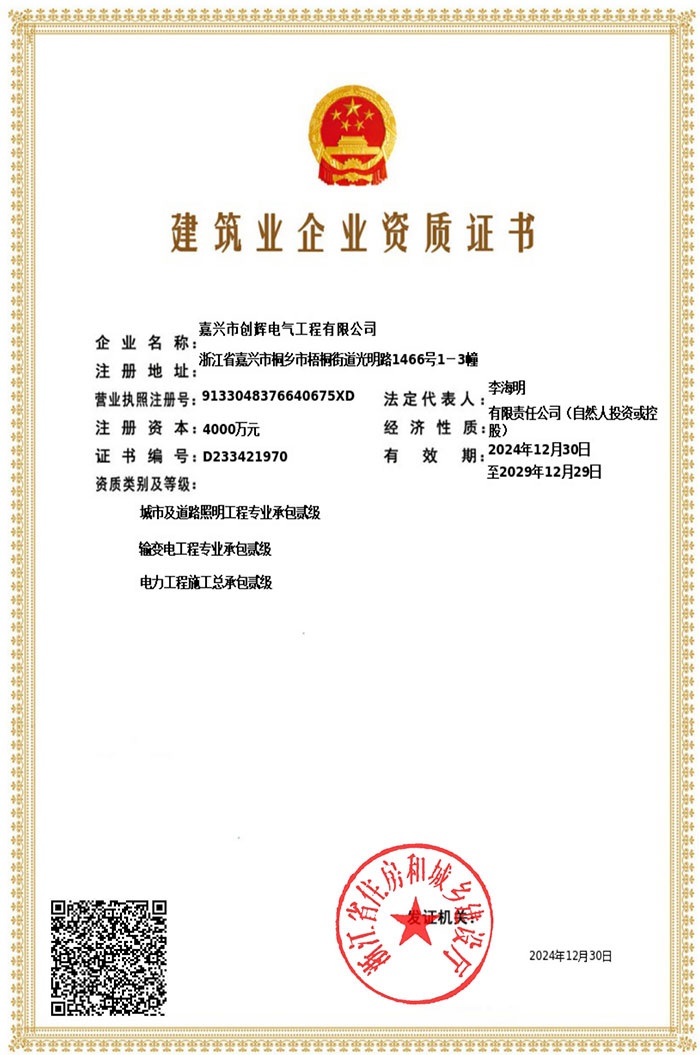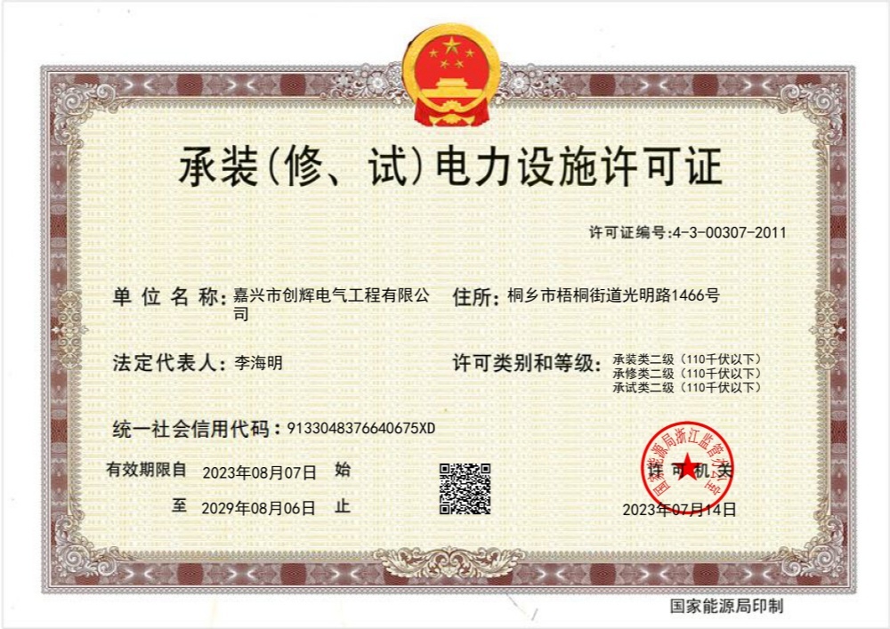 嘉興市創(chuàng)輝電氣工程有限公司,總部坐落于浙江桐鄉(xiāng)經(jīng)濟(jì)開(kāi)發(fā)區(qū),公司成立于2004年,是一家承接高、低壓輸變電工程施工安裝、維修的企業(yè)。公司下設(shè)人事行政部、預(yù)結(jié)算部、采購(gòu)部、財(cái)務(wù)部、營(yíng)銷(xiāo)部和工程部等,其中工程部根據(jù)具體作業(yè)內(nèi)容分設(shè):變電項(xiàng)目部(12個(gè)班組)、線路項(xiàng)目部(6個(gè)班組)。現(xiàn)有員工500余人,其中擁有一級(jí)建造師3名,二級(jí)建造師15名,高級(jí)工程師1名,工程師36名,助理工程師52名,高壓電工240余名。目前我公司已具備電力工程總承包貳級(jí)資質(zhì),輸變電工程專(zhuān)業(yè)承包貳級(jí)資質(zhì),城市及道路照明工程專(zhuān)業(yè)承包貳級(jí)資質(zhì),承裝(修、試)電力設(shè)施許可二級(jí)資質(zhì),建筑施工安全生產(chǎn)許可,是浙江省高新技術(shù)企業(yè)、省AAA級(jí)“守合同重信用”企業(yè)。